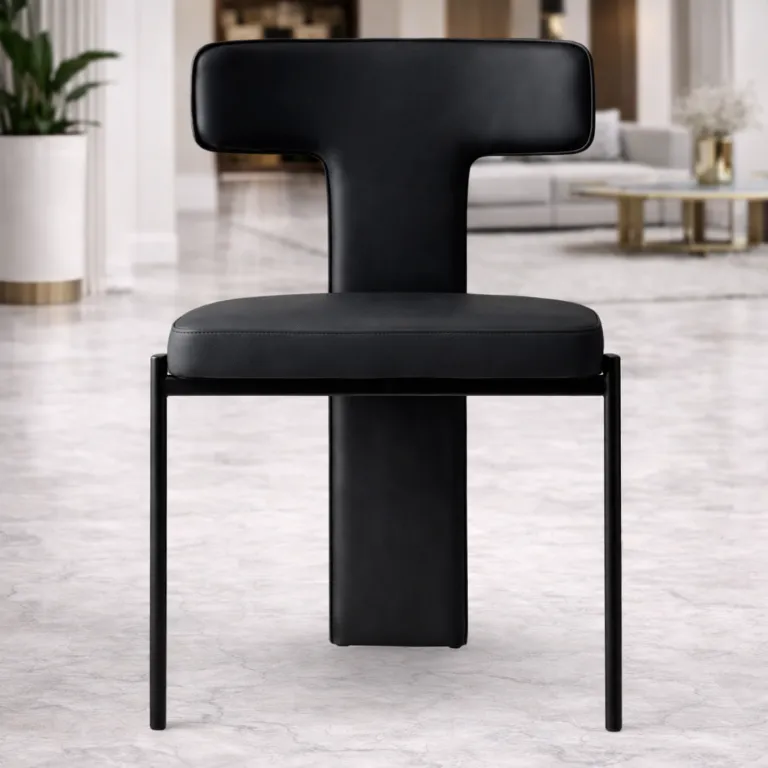 Available in a curated range of fabrics and leathers, with customization across upholstery tone, stitch definition, and optional contrast piping. Frame finishes can be specified in alternative metal tones, with matching or contrasting accent hardware to tune warmth and contrast while preserving the chair’s architectural clarity and proportion.