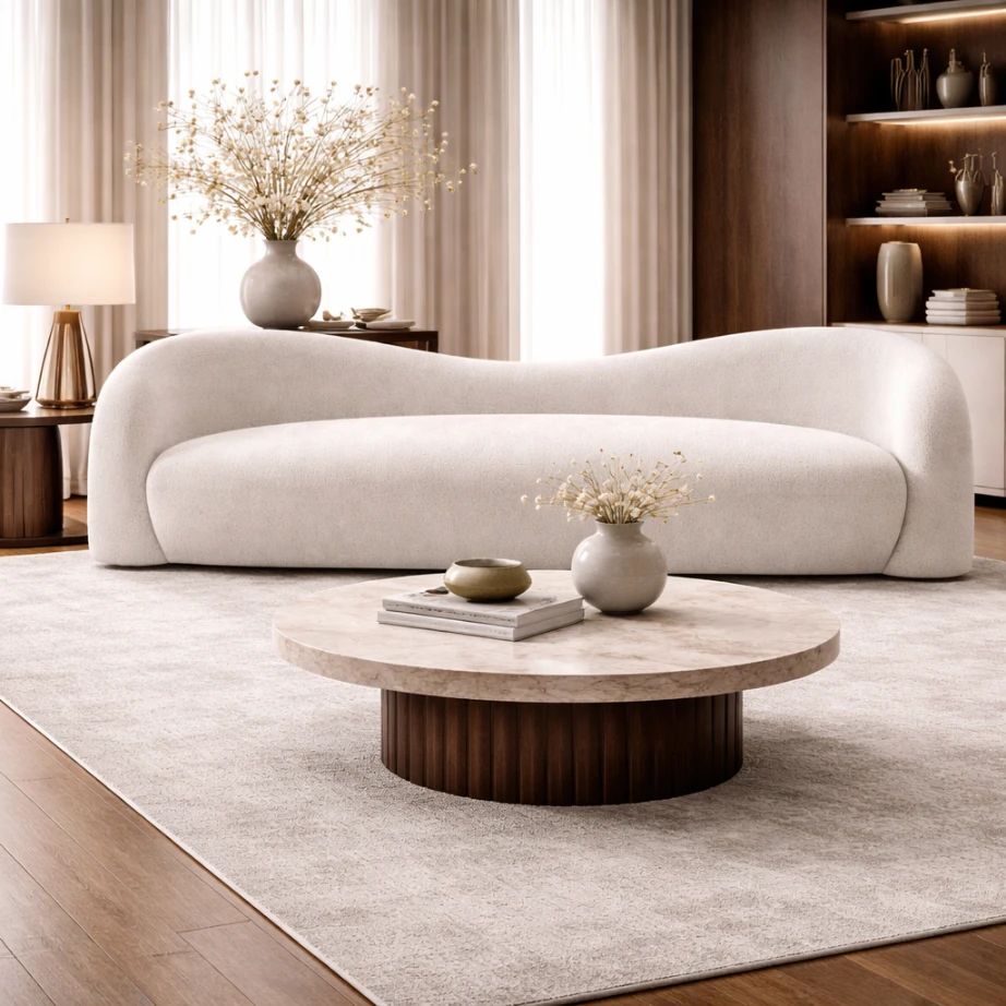 Customization options include upholstery material and tone, with potential adjustments to overall length. The result is a piece defined by balance, tactile continuity, and an understated architectural presence suited to contemporary interiors.